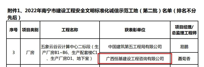 ▲2022年南寧市建設(shè)工程安全文明標(biāo)準(zhǔn)化誠信工地(第二批)獲獎名單