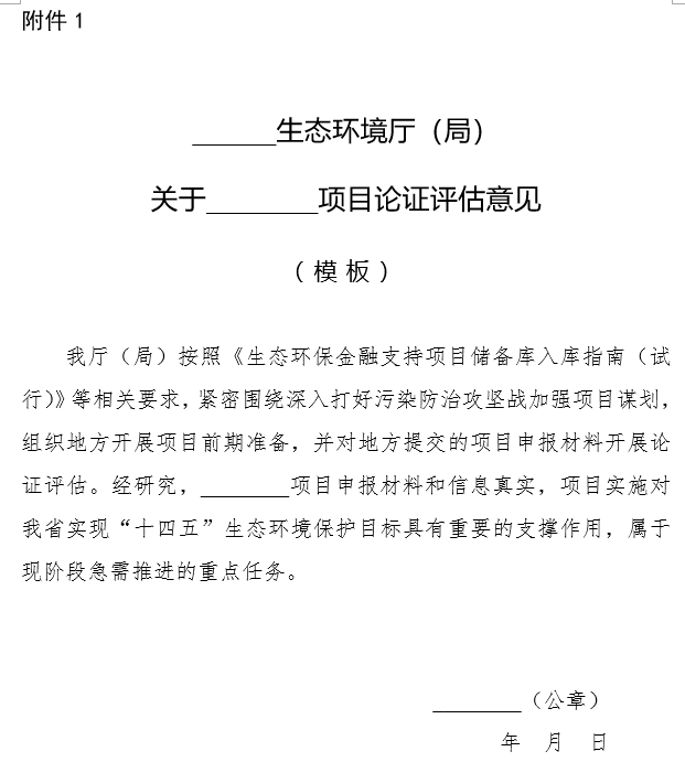 (三)省級生態(tài)環(huán)境部門項目論證評估意見(模板見附件1)。